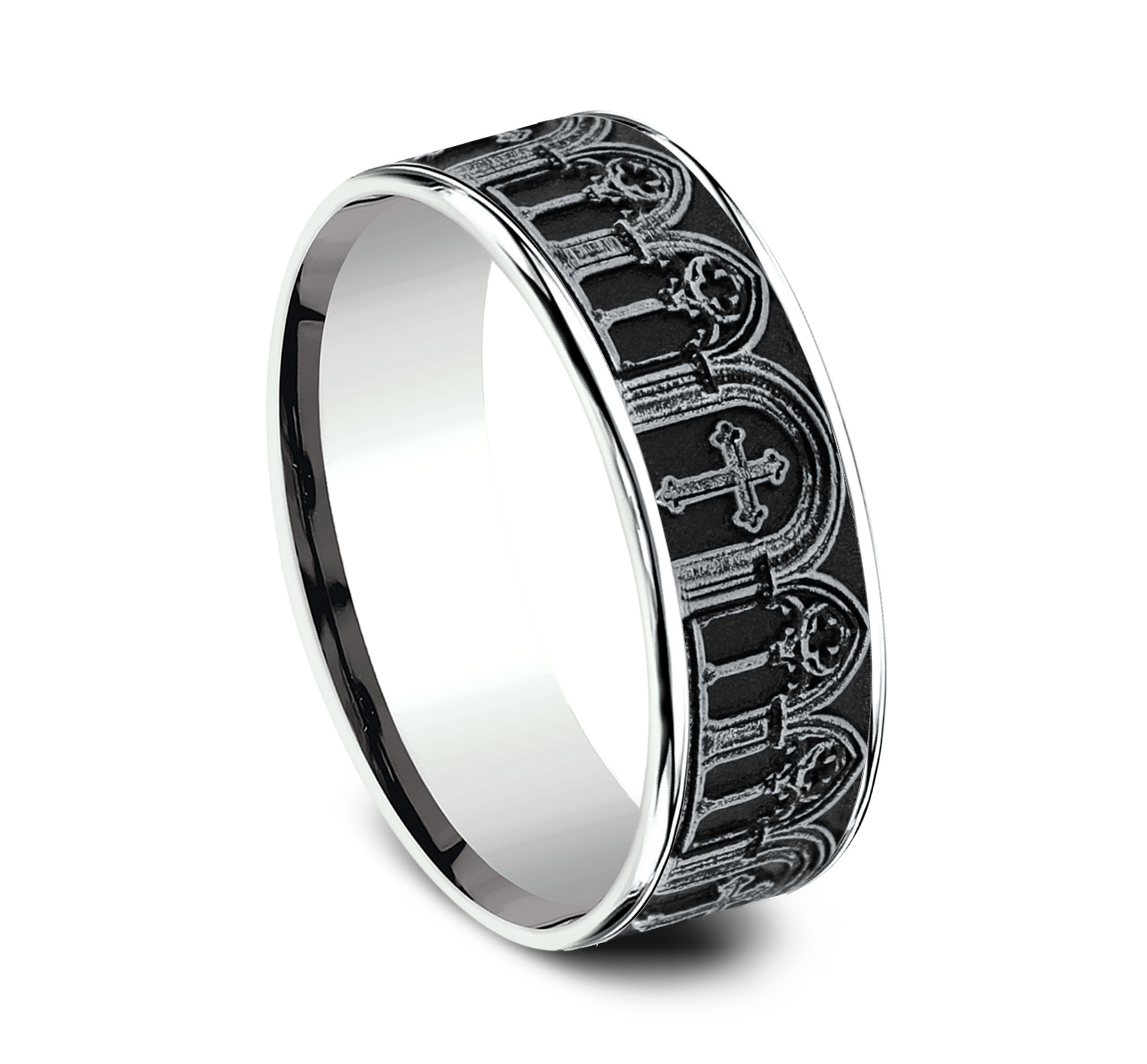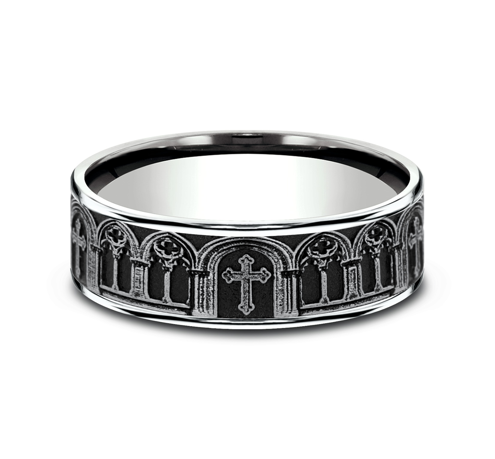 7mm, Comfort fit 14K White Gold Cathedral arches design