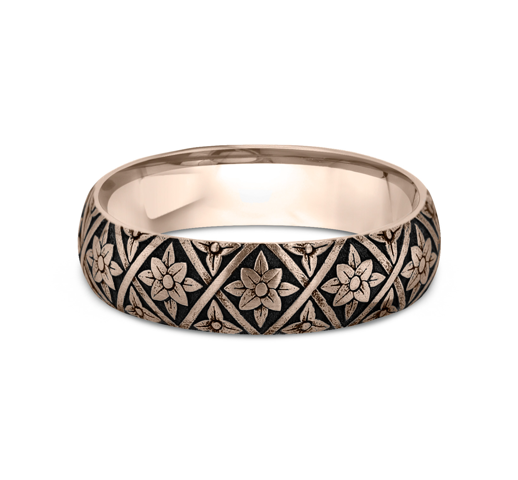 6mm, Comfort fit 14K Rose Gold Floral weave design