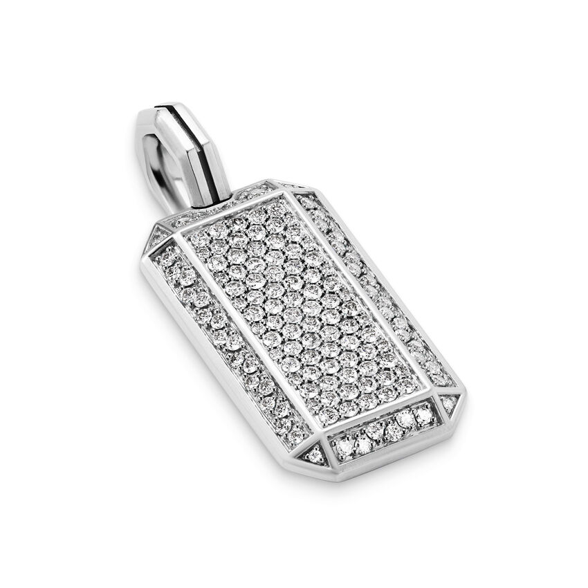 Deco Tag in Sterling Silver with Diamonds, 27mm