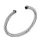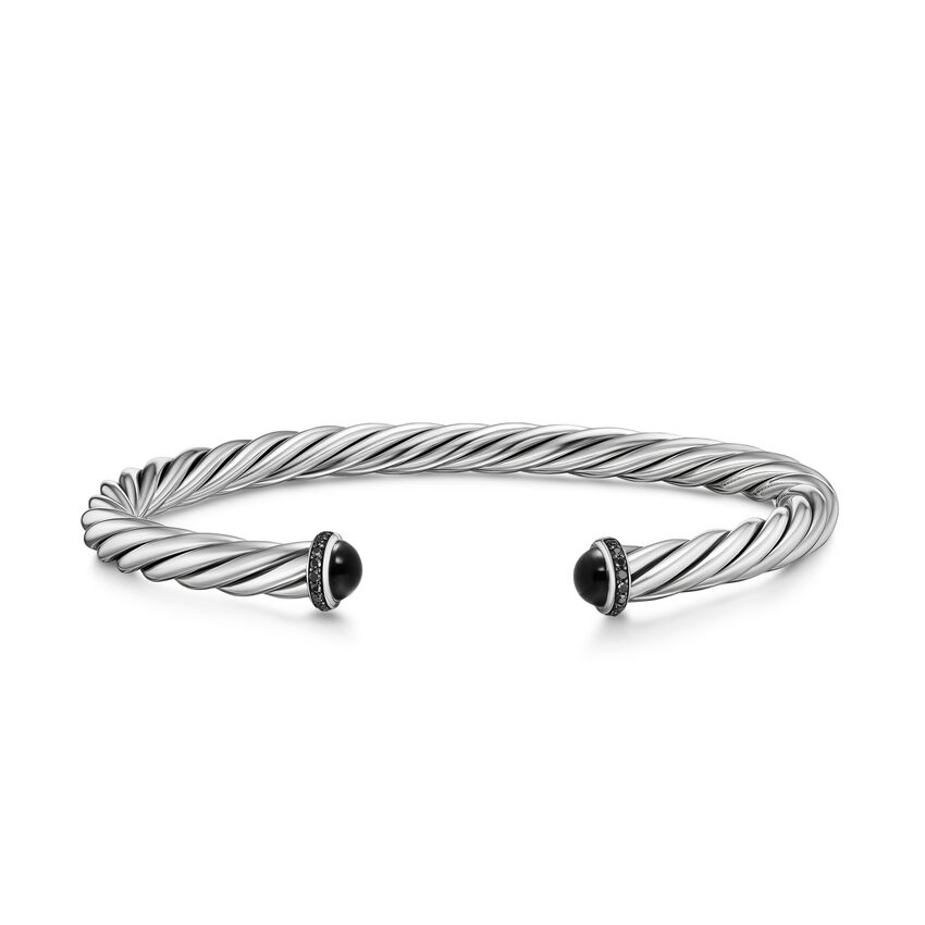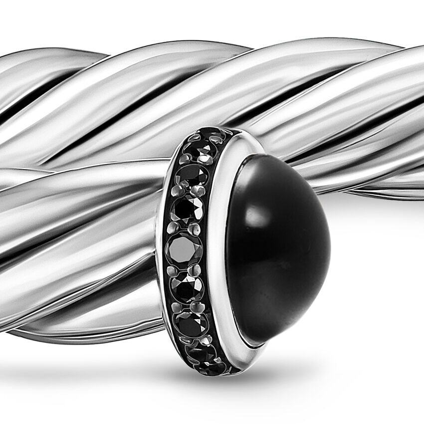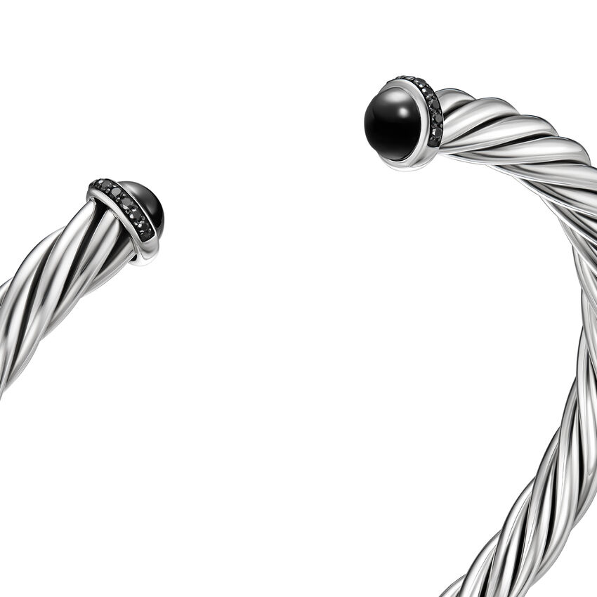Cable Cuff Bracelet in Sterling Silver with Black Onyx and Black Diamonds, 6mm