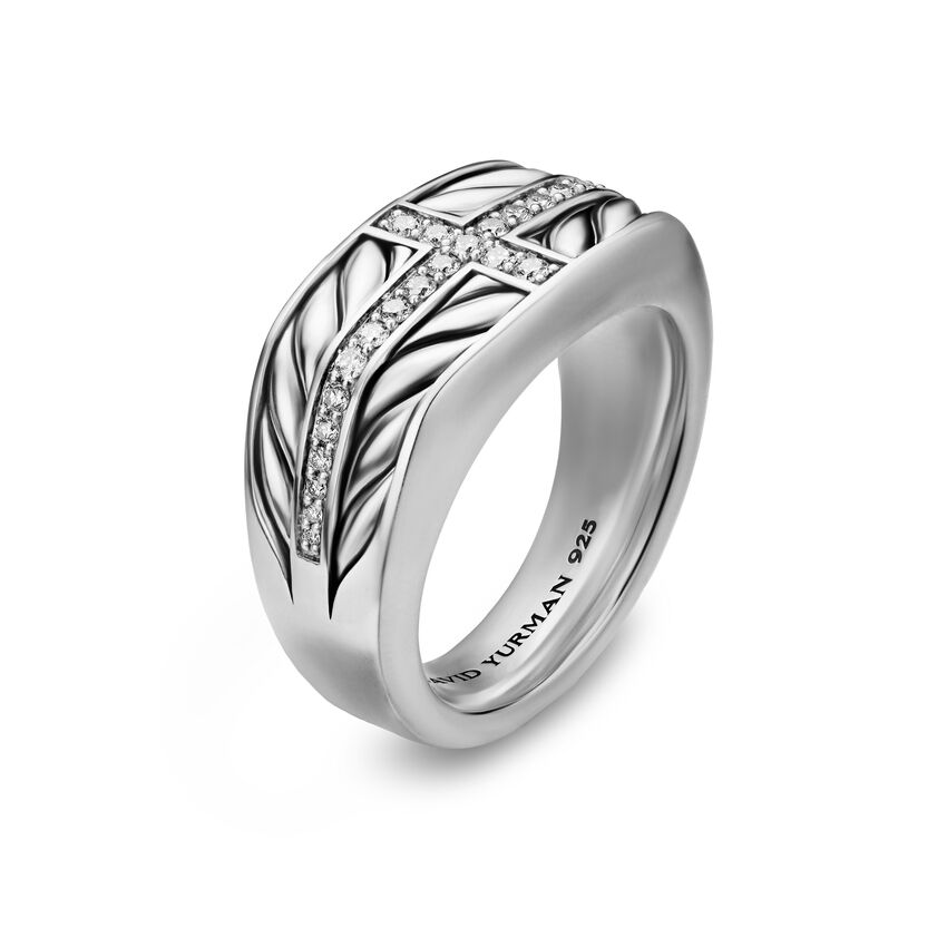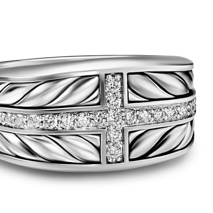 David Yurman skillfully reinterprets chevron—the ancient V-shaped pattern used in architecture and art—in this modern, sculptural collection. Viewed in relation to one another, each half of the motif is a mirror image of Cable.