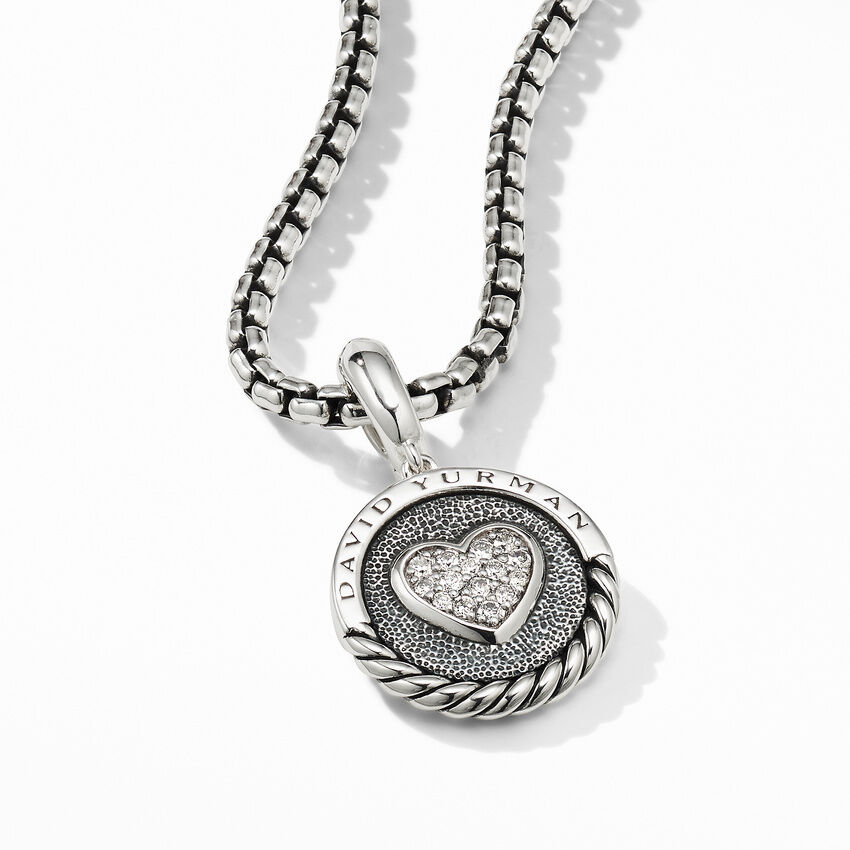 Heart Amulet in Sterling Silver with Diamonds, 25.7mm