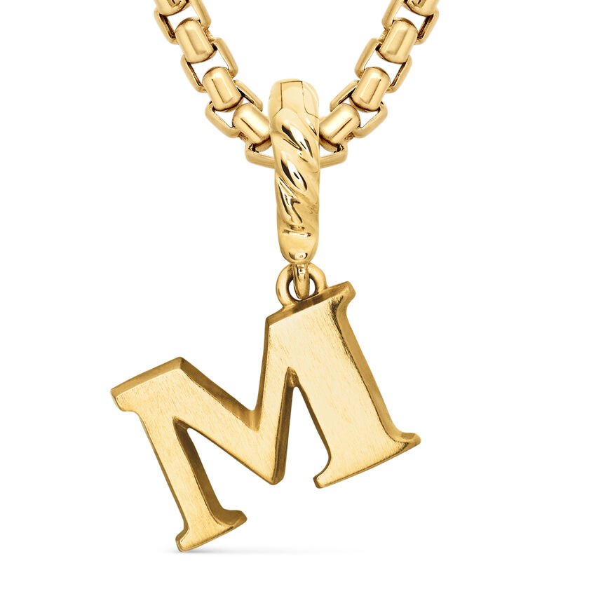 Pavé Initial Pendant in 18K Yellow Gold with Diamond M