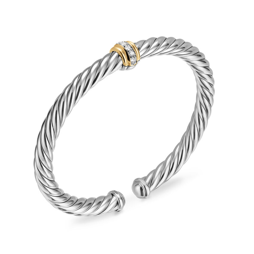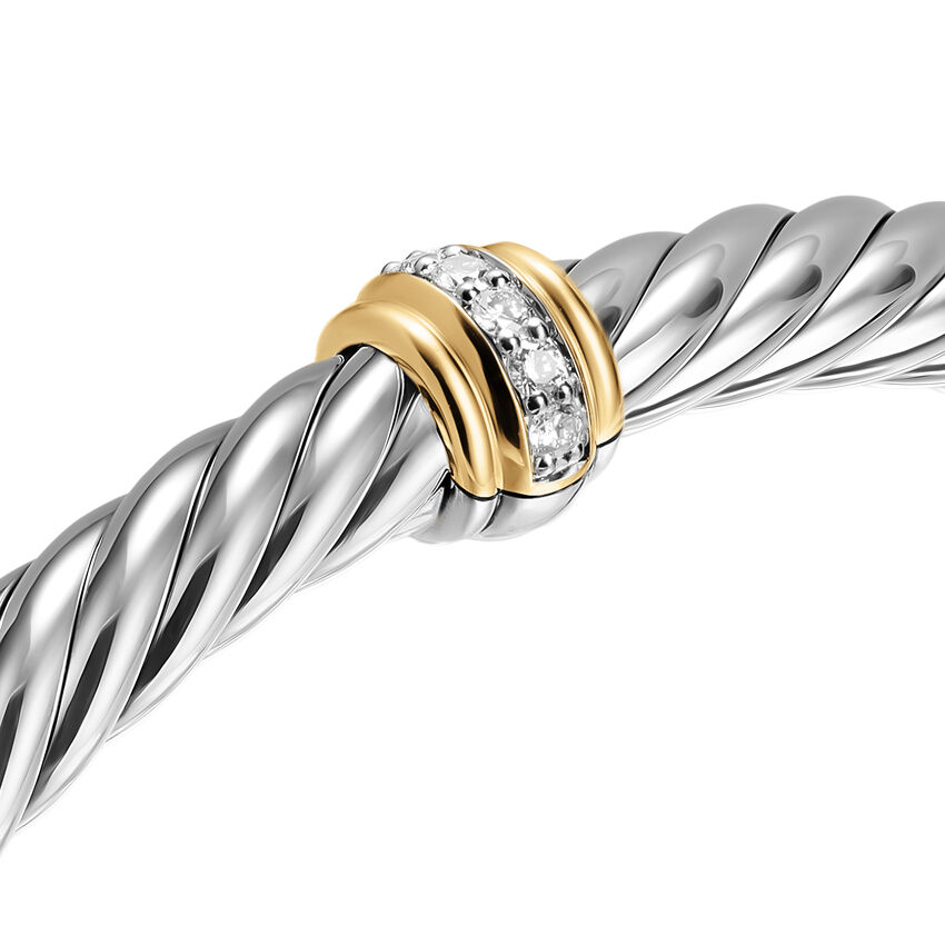 Cable Flex® Center Station Bracelet in Sterling Silver with 14K Yellow Gold and Diamonds, 6mm