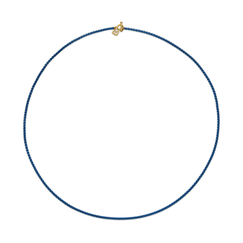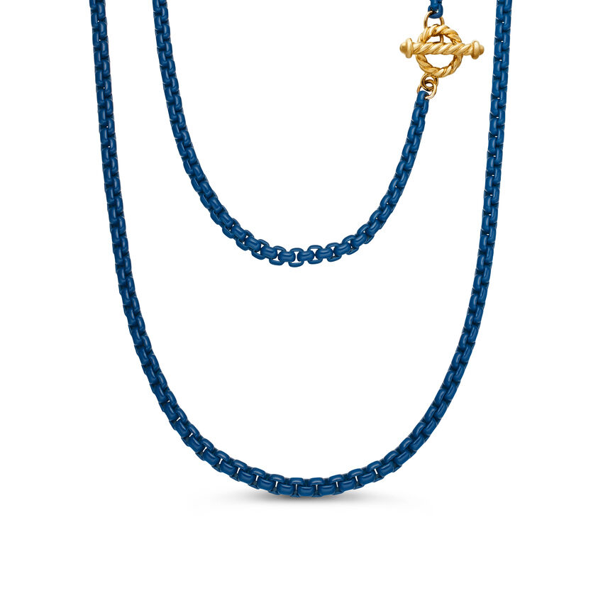 DY Bel Aire Color Box Chain Necklace in Navy Acrylic with 14K Yellow Gold Accents, 2.7mm