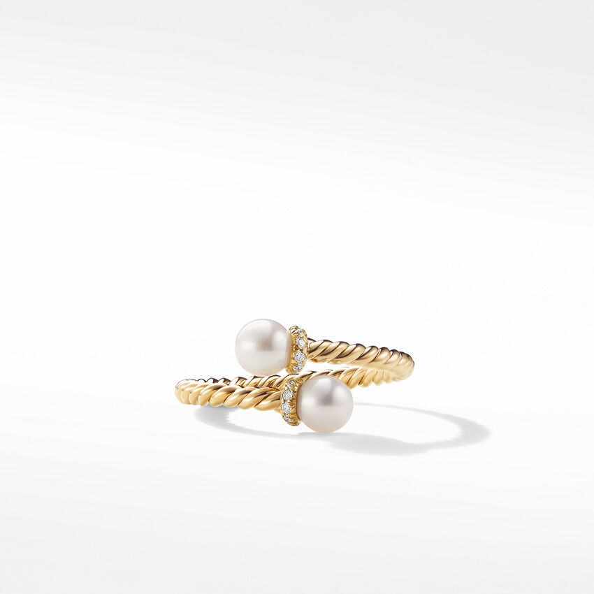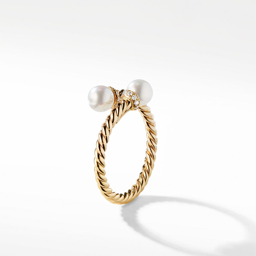 Petite Solari Bypass Ring in 18K Yellow Gold with Pearls and Pavé Diamonds