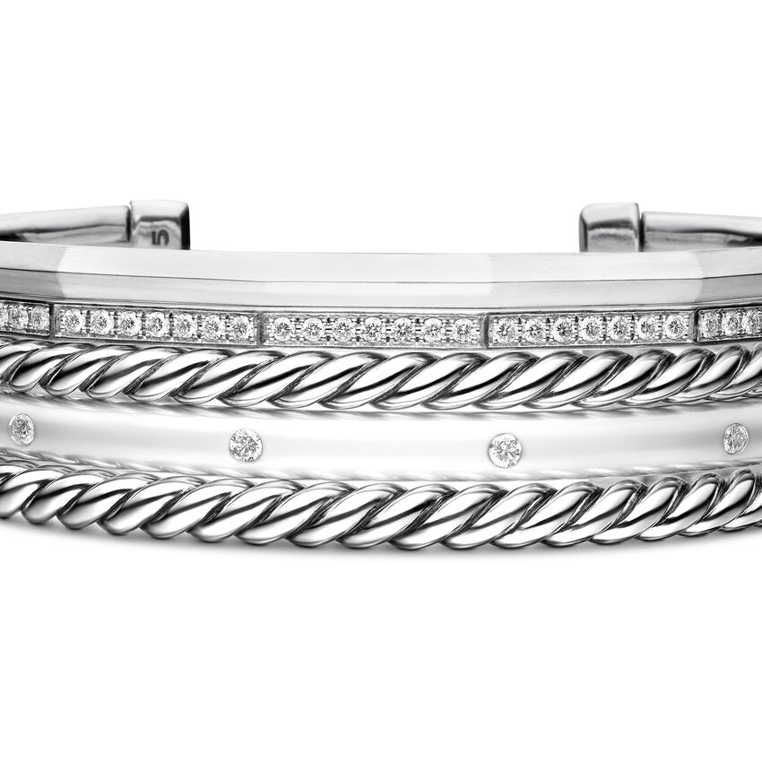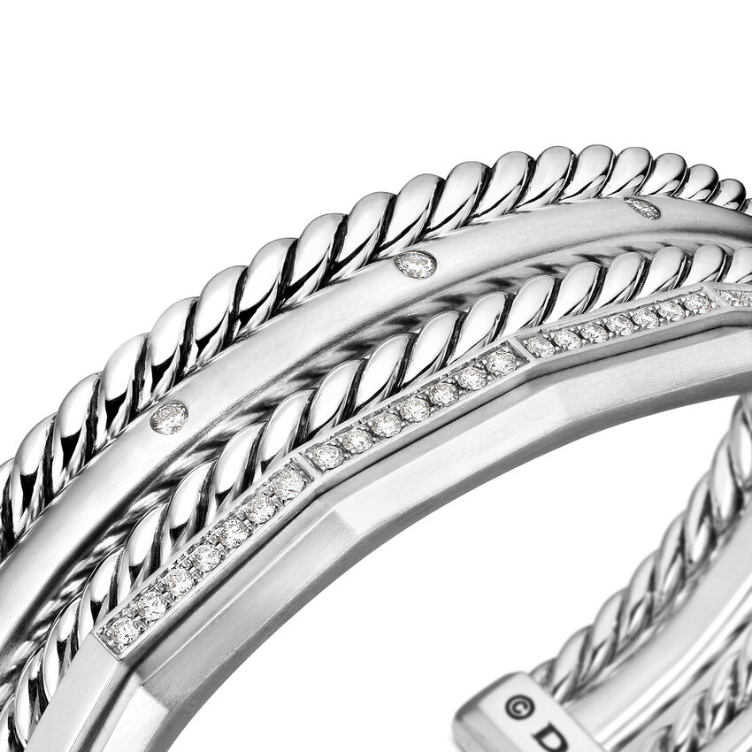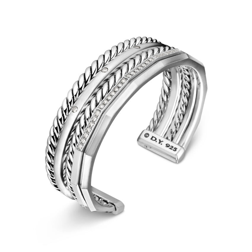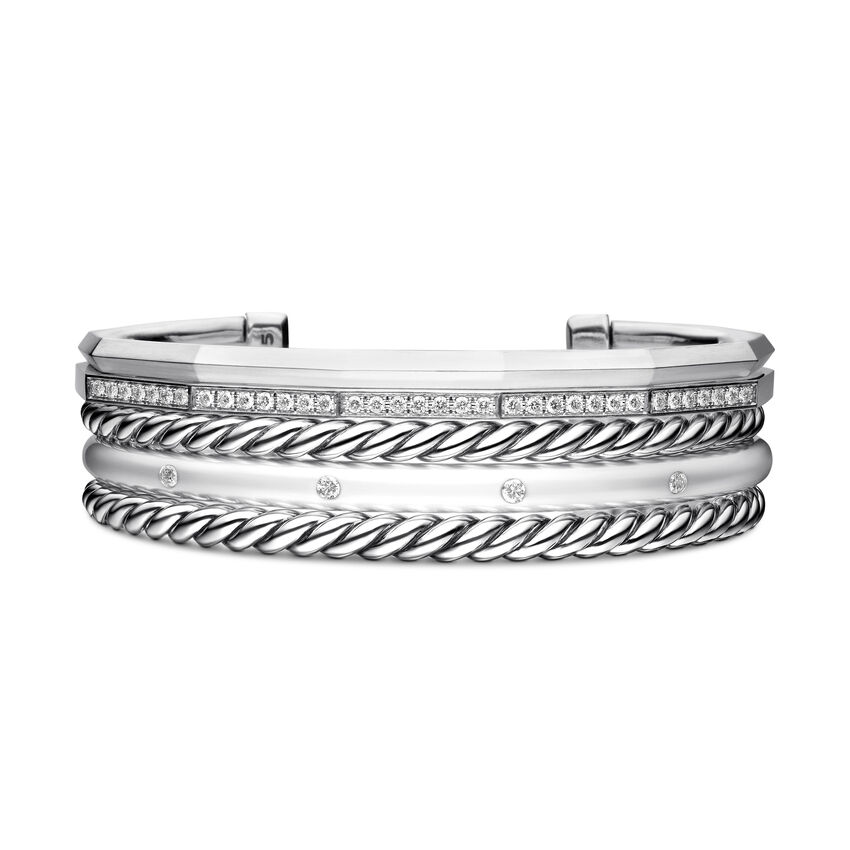 Stax Five Row Cuff Bracelet in Sterling Silver with Diamonds, 16mm