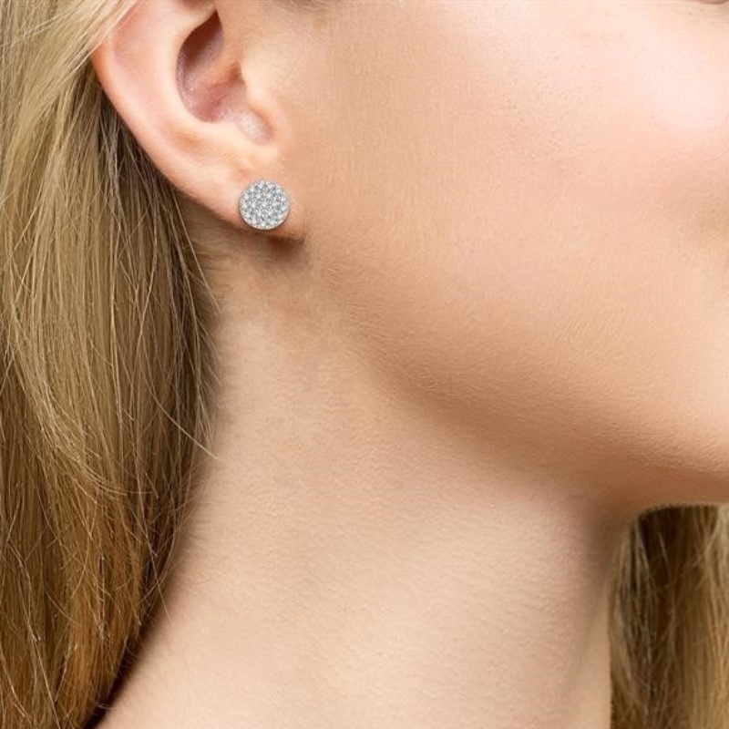 A simple design made beautiful with diamonds this fashion earring from the trending Petite Collection catches the eye instantly. It features a disc shape mount embellished with full cut diamonds. Each earring display