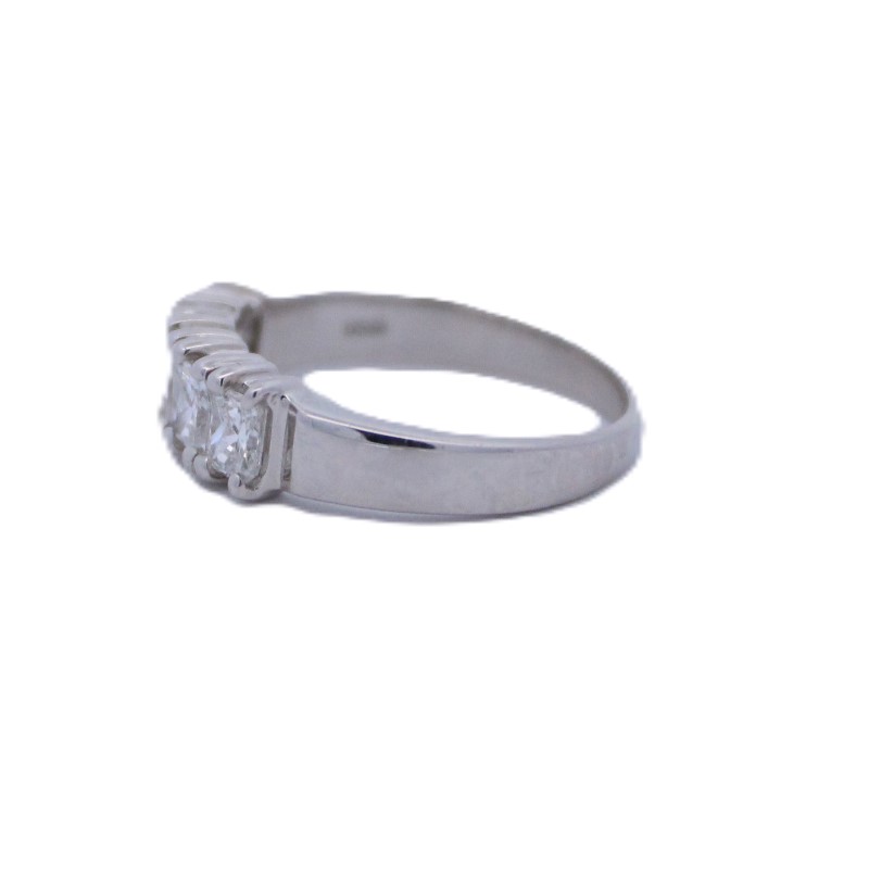 The ring is prong set with 5 cushion cut diamonds having a total combined weight of 0.95 carat and graded H-I color and SI2-I1 for clarity. Size 6.5.