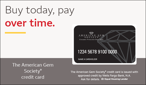 *The American Gem Society credit card is issued with approved credit by Wells Fargo Bank, N.A. Ask for details.