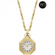 Tracing its roots to Bulova's Rubaiyat pendant watches from the early 20th Century, the new limited-edition Art Deco Rubaiyat pendant watch captures Bulova's rich history in a versatile design to celebrate our 150th Anniversary. Inspired by a 1919 Rubaiyat design, this elegant pendant watch has a polished octagonal gold-tone stainless steel case appointed with a raised border motif and a blue synthetic spinel cabochon on the 12 o'clock crown. Lustrous and sophisticated, the mother-of-pearl dial has vintage-inspired hands and printed Arabic numerals, while the individually numbered case back showcases an embossed image of the Goddess of Time. Evoking its predecessor, a matching 30-inch chain with a lobster claw closure carries the pendant case, affording stylish versatility as a necklace, wristlet, or belt accessory. At once contemporary and vintage, this new Bulova Rubaiyat pendant watch is delivered in a custom luxury case with a storybook and is a must-have accessory for the modern wardrobe. Limited to 5,000 pieces worldwide.