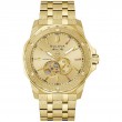 Combining classic nautical styling with contemporary flair, this Bulova Marine Star men's watch captures a legacy that reaches back decades and captures the incredible spirit of legendary musician Marc Anthony. Bold and angular, the gold-tone stainless steel case is defined by textured iced finishing with polished accents and a gold-tone bezel. Elevating the timepiece's luxurious aesthetic, a radiant gold-tone dial features matching hands and hour markers, each with luminescent material, with rose gold-tone accents at 1, 3, and 5, numbers with personal significance to Marc Anthony. Visible through both a dial aperture and a smoked exhibition caseback with Anthony's signature, the open heartbeat automatic movement features 21 jewels and a 42-hour power reserve. Completed with a matching gold-tone stainless steel bracelet with a push-button clasp and delivering 200 meters of water resistance, this new Bulova Marine Star from the Marc Anthony collection is equipped to handle the rhythms of a life well lived.