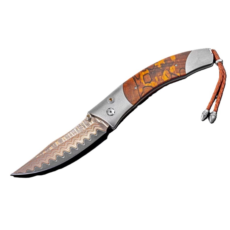William Henry Humboldt Titanium pocketknife with Copper Wave damascus and orange spalted beech wood